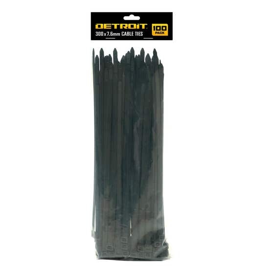 CABLE TIE STANDARD DETROIT 300MM X 7.6MM BLACK PK100